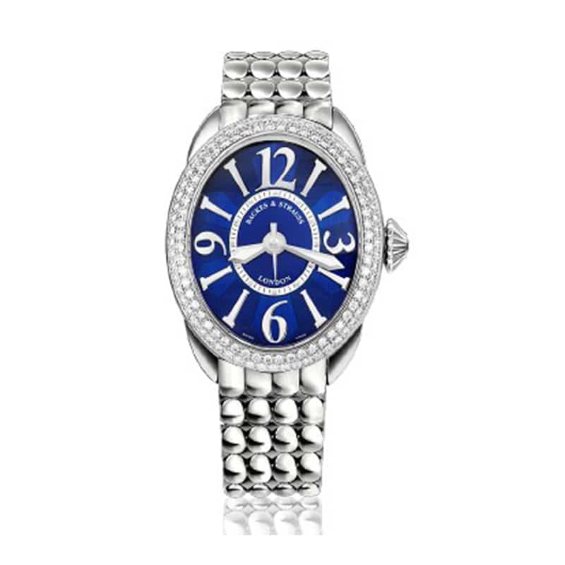 One Backes & Strauss Regent Collection ladies automatic watch in stainless steel featuring two rows of diamonds on the case and one diamond on the crown (2.01TCW). Serial number: 018. Price is in USD.