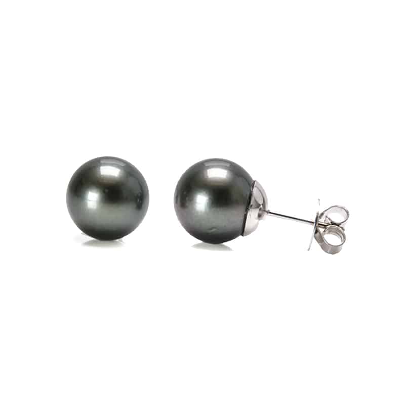 Pearl stud earrings in 18k white gold, featuring 2 Black Tahitian Pearls.