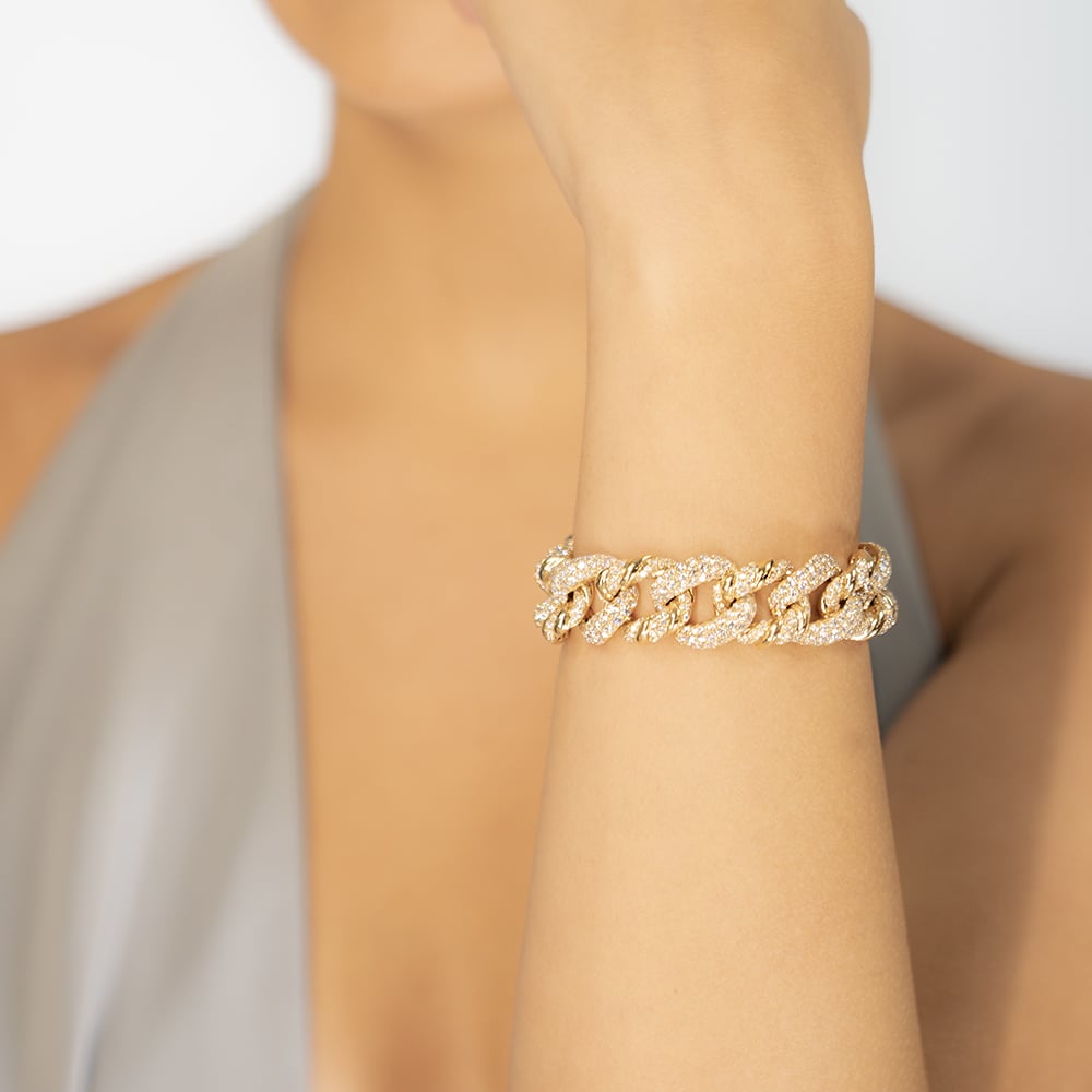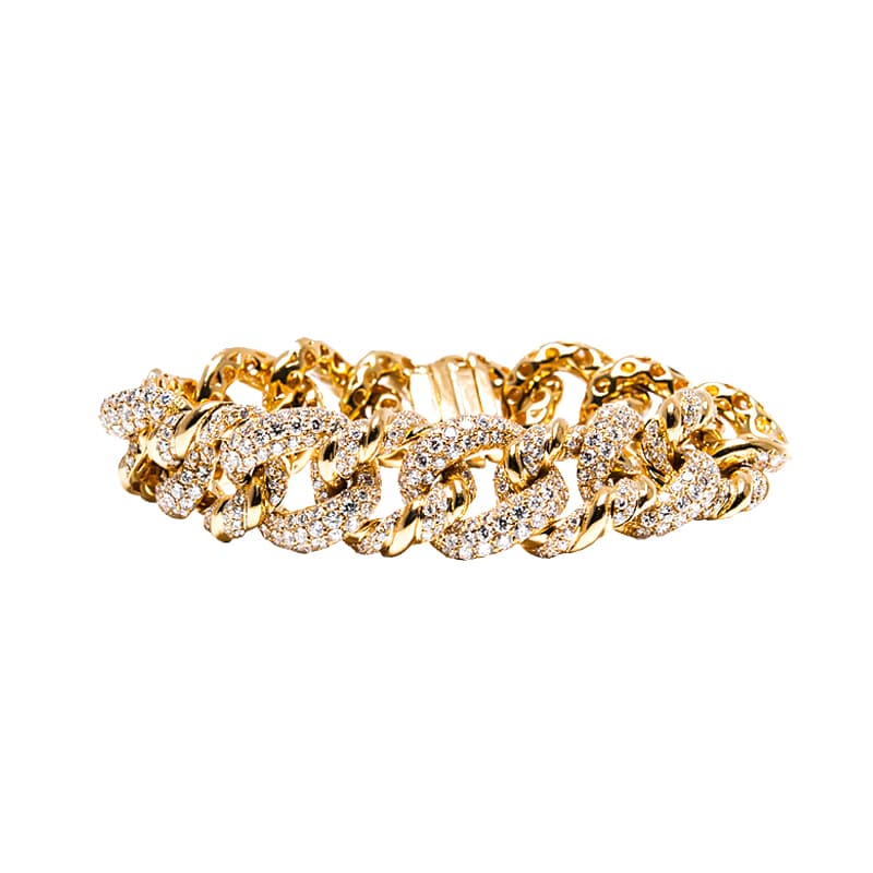 A bracelet in 18k yellow gold featuring 866 round brilliant cut diamonds (16.76 cts) in pavé style settings.