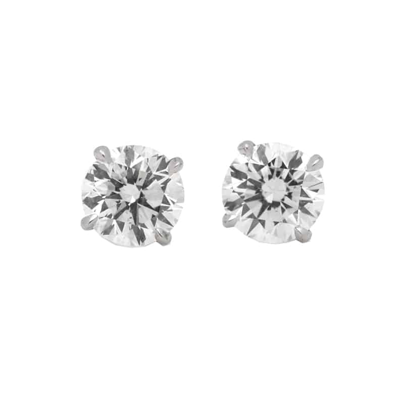 Earrings in platinum featuring two round brilliant cut diamonds (GIA certified; #6425907669 1.00CT SI1/G & #7432340508 1.00CT SI1/G).