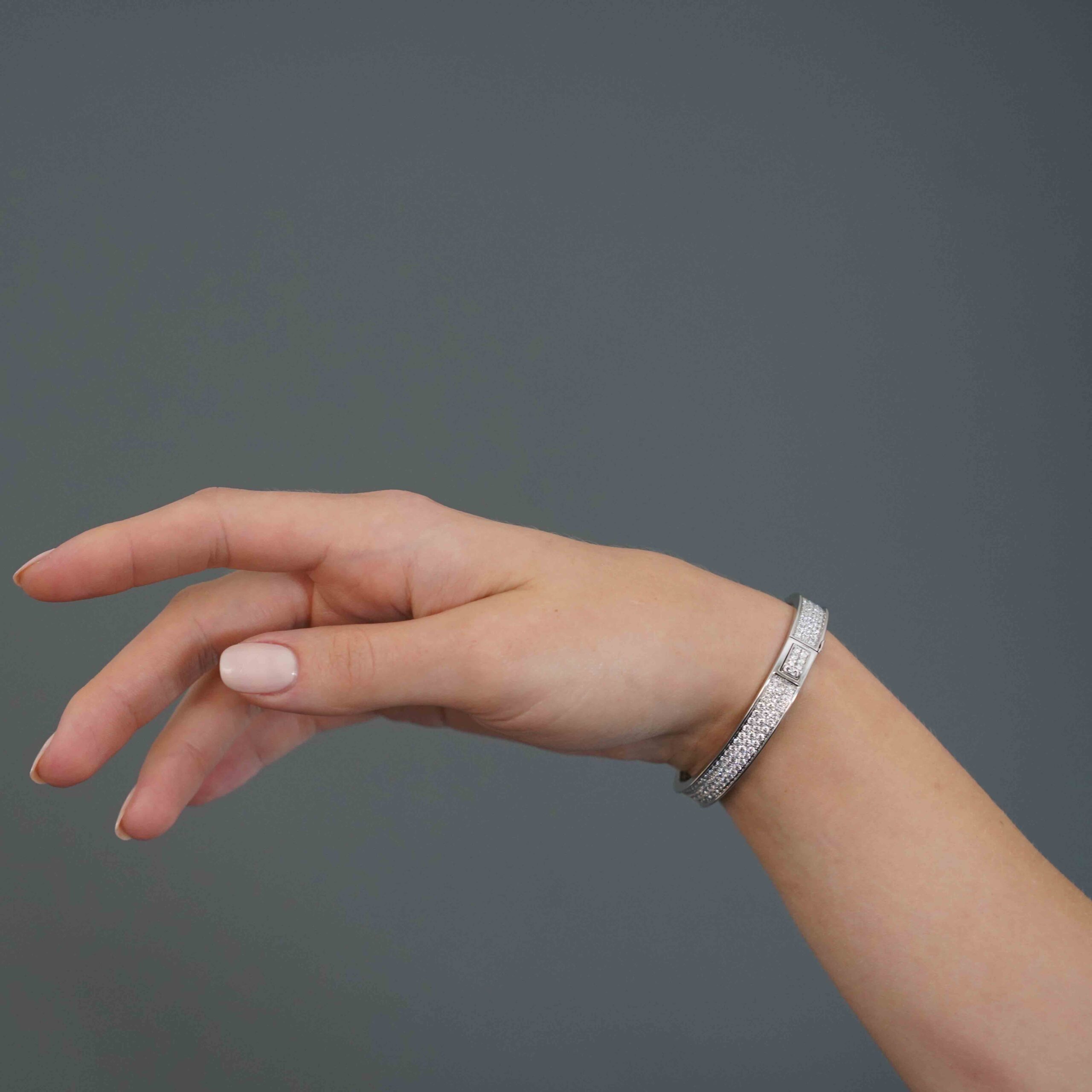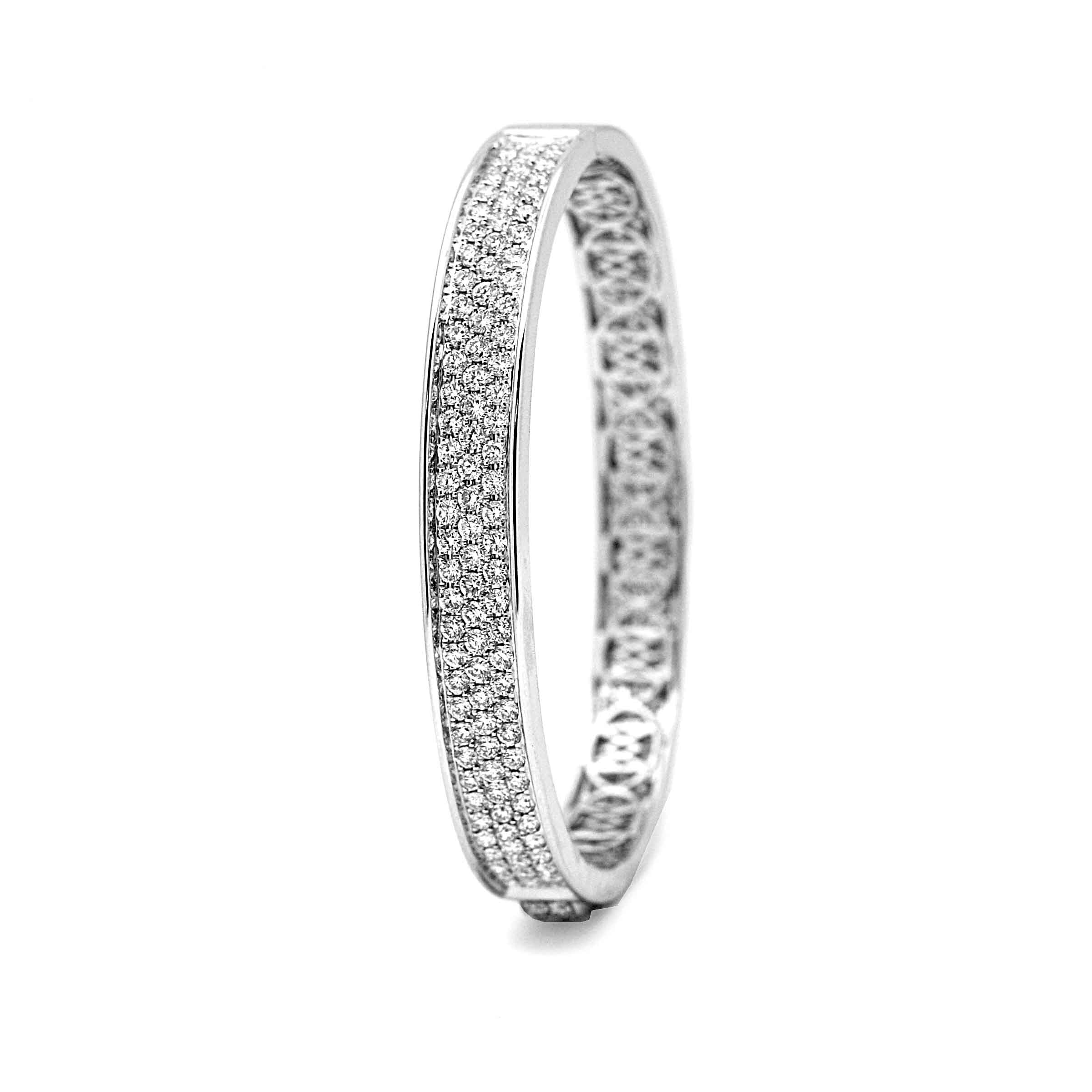 One custom designed 18k white gold diamond studded bangle set with 225 round brilliant cut diamonds 6.00ct VS-SI Clarity F-H colour in pave setting.