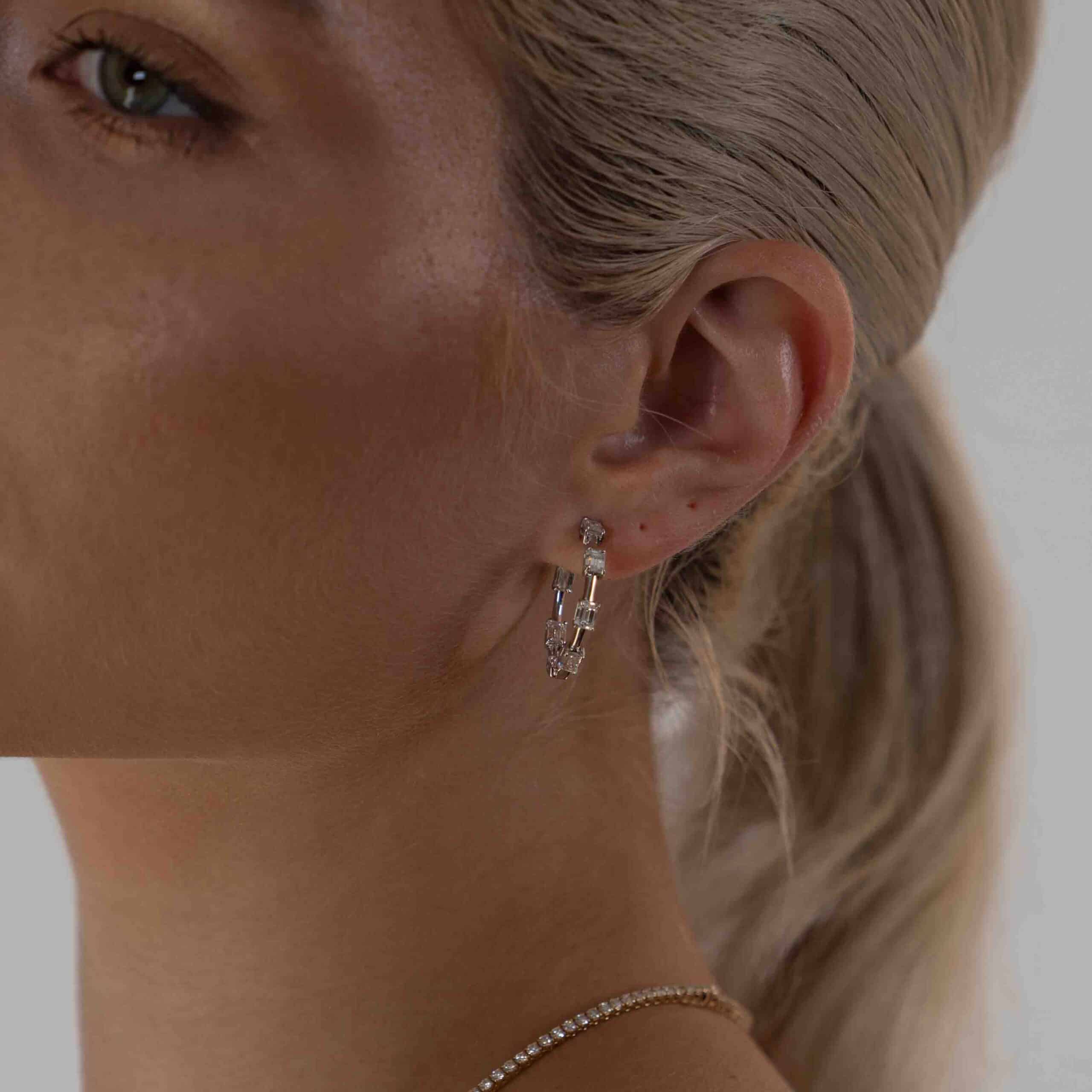 Earrings in 18k white gold featuring fourteen (14) emerald cut diamonds (3.53TCW; VS clarity; H-I colour) in claw settings.