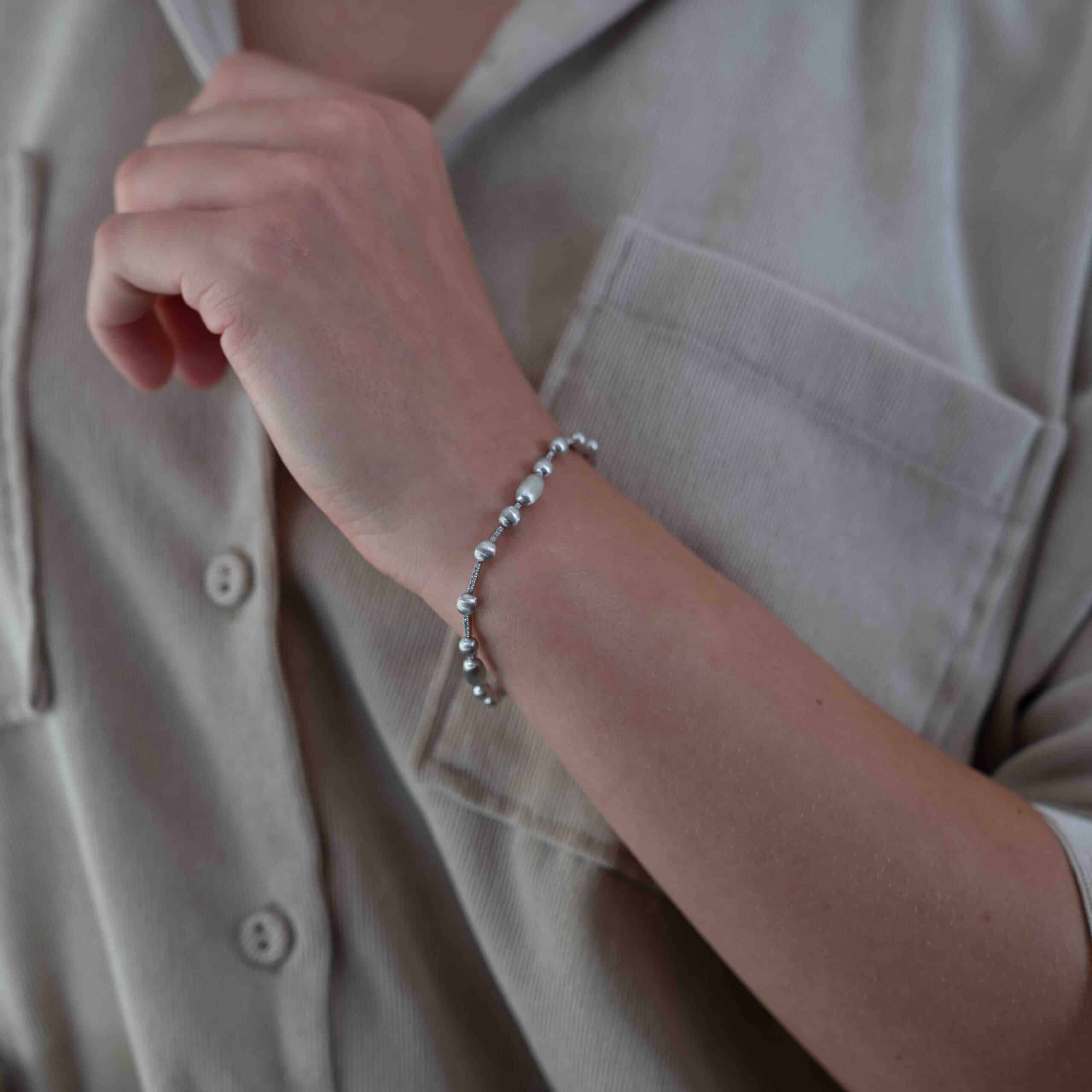 One Nanis Elite Collection 18k white gold bracelet featuring 0.20TCW of round brilliant cut diamonds (VS clarity; G color). The bracelet is 17.8cm in length.