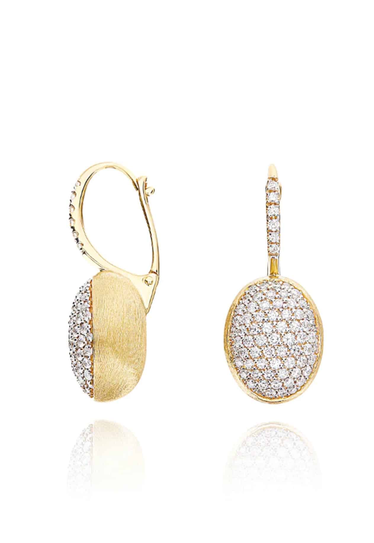 One pair of Nanis Ciliegine drop earrings in 18k yellow gold featuring round brilliant cut diamonds. Medium size.