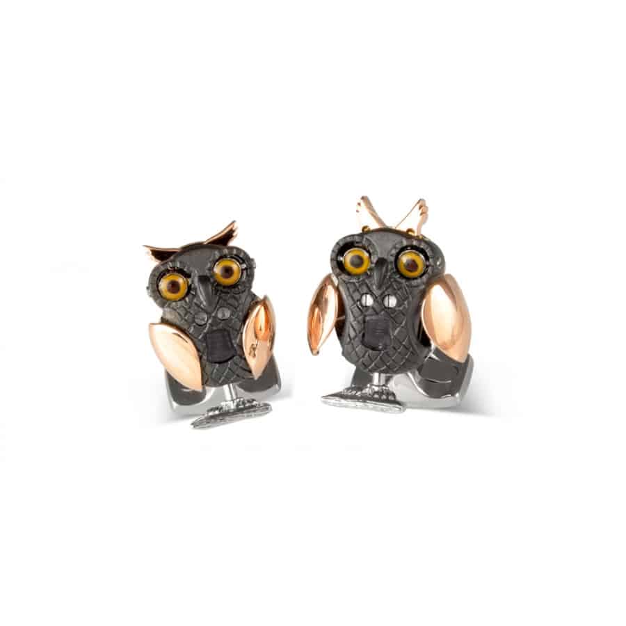 Owl Cufflinks by Deakin And Francis in Sterling Silver plated with rose gold .