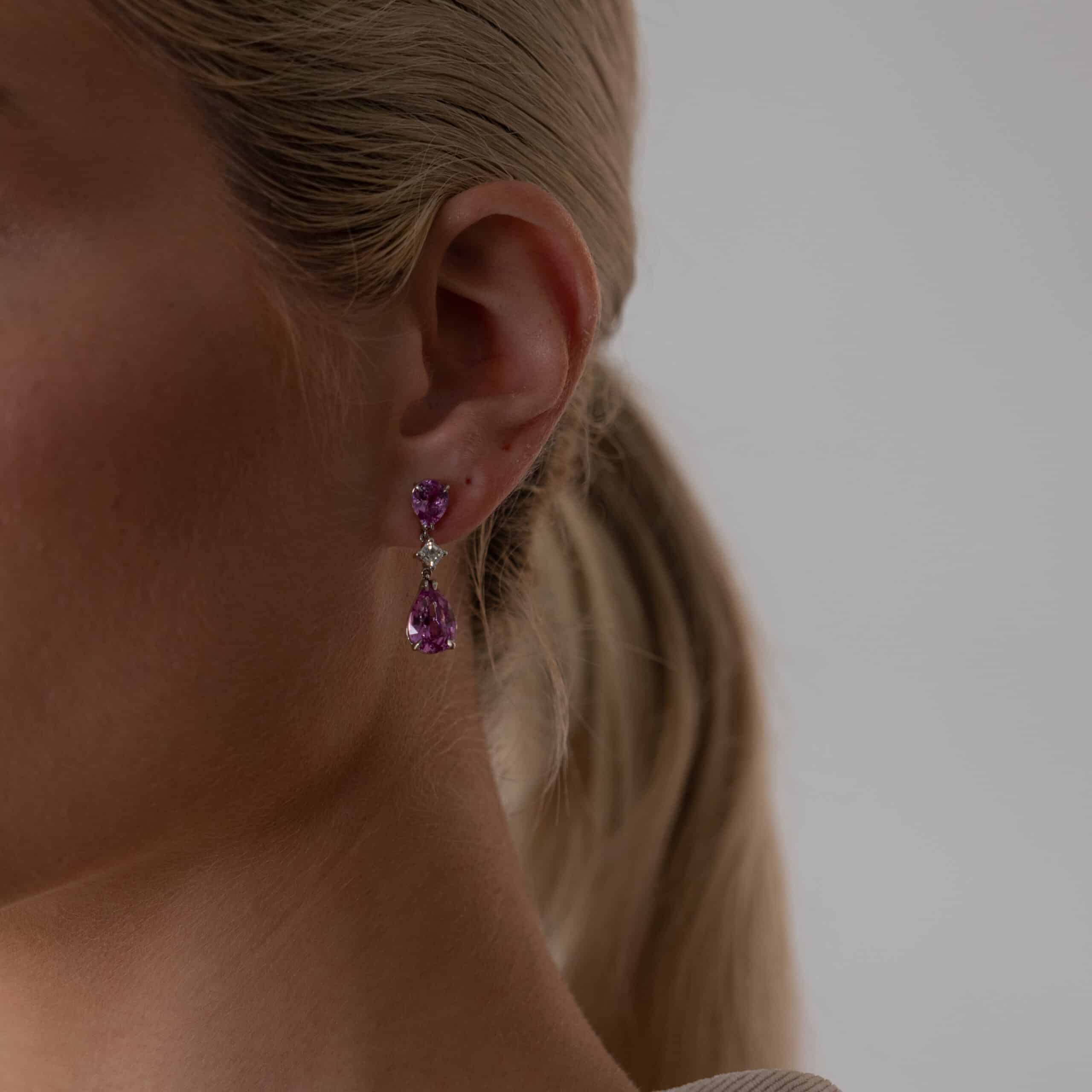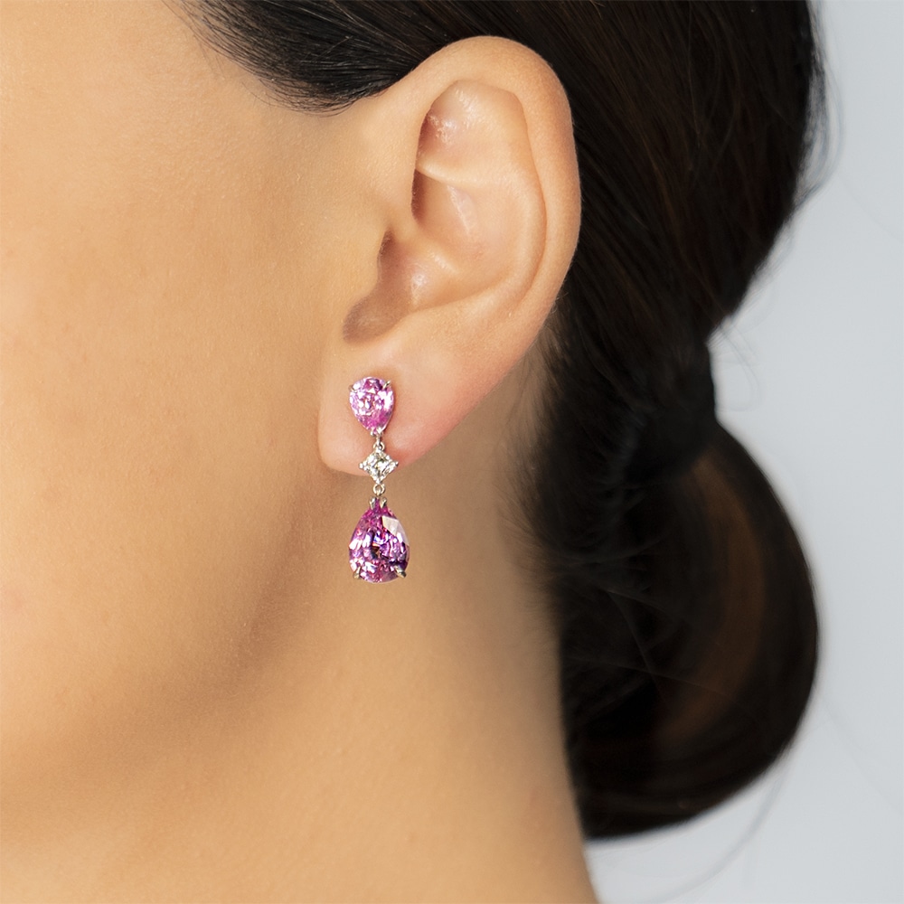 Enquire about:Pink Sapphires and Diamond Drop Earrings