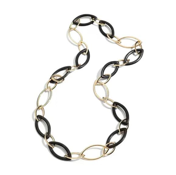 One Vhernier Pop necklace in 18k rose gold featuring ebony. The necklace comes with a removeable clasp to convert it from a long necklace into a shorter double strand necklace. #310868. Price is in USD.