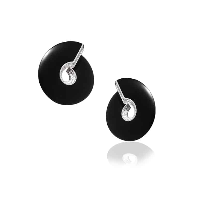 One pair of Vhernier Verso earclips in 18k white gold featuring jet and one hundred and ten (110) round brilliant cut diamonds (1.14TCW; IF-VVS clarity; D-E-F colour). #304871.