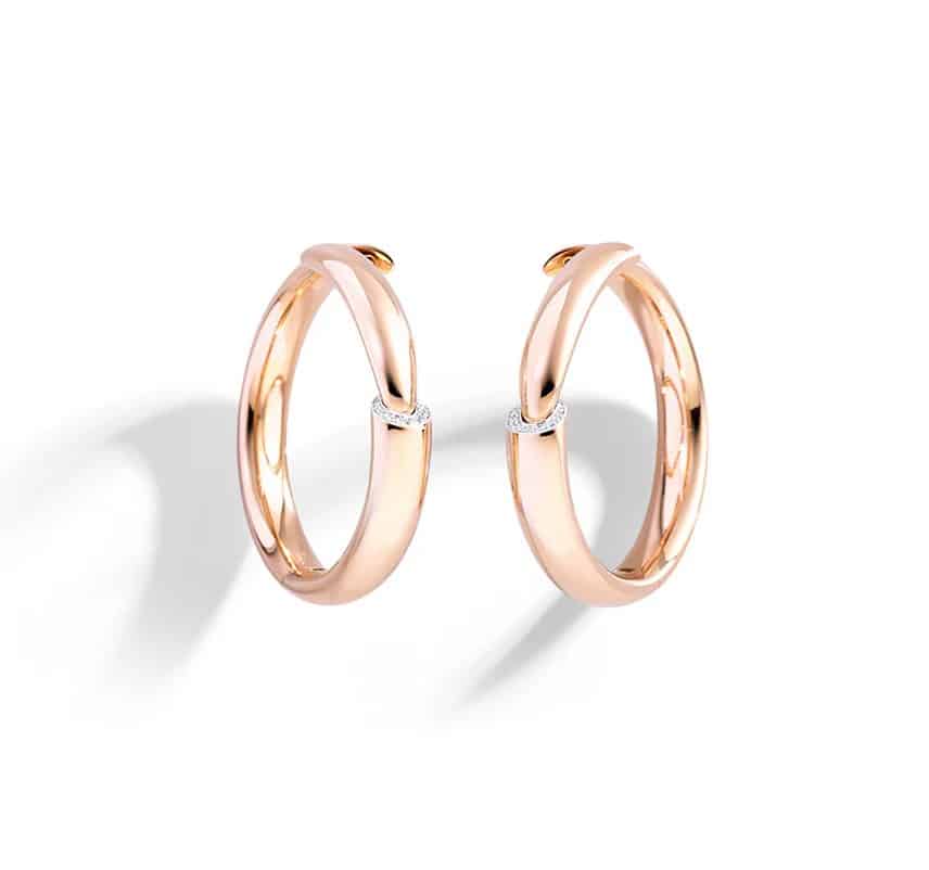 One pair of Vhernier Calla earrings in 18k rose gold featuring fourteen (14) round brilliant cut diamonds (0.08TCW; IF-VVS clarity; D-E-F colour). #313679. Price is in USD.