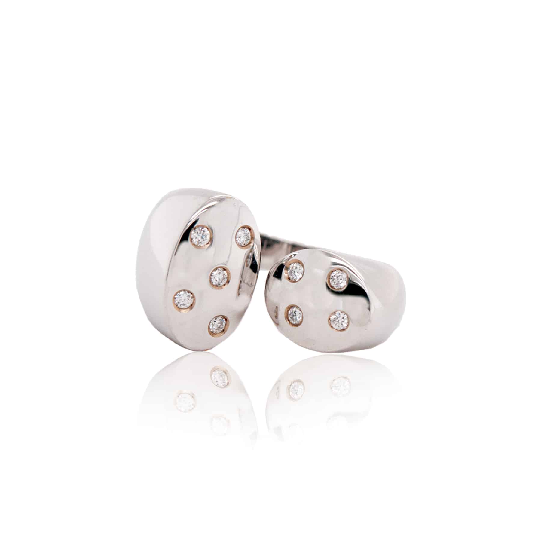 Trumpet ring in 18k white gold, featuring 9 round brilliant cut diamonds (0.17 cts.)